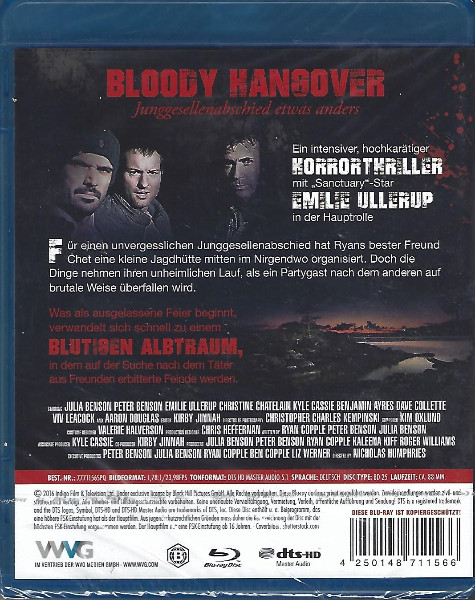 In "Bloody Hangover", neu und originalverpackt, erwartet dich ein Horror-Erlebnis der Sonderklasse: Eine Gruppe von Freunden feiert den letzten Tag in Freiheit eines der ihren, doch der Abend nimmt eine tödliche Wendung. Entdecke eine Handlung, die mit verblüffenden Wendungen und intensive Schockmomente gespickt ist, welche selbst hartgesottenen Genre-Fans den Atem rauben wird.