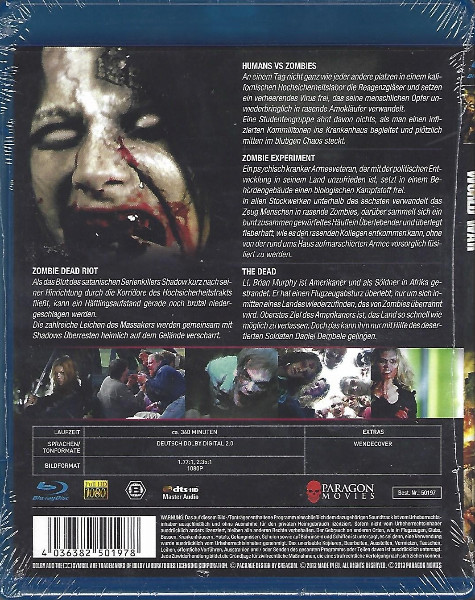 Erlebe die erschütternde Intensität von Zombie Dead Riot, wo die Toten die Erde überrennen. In Humans vs Zombies wird die Adrenalinausschüttung maximiert, wenn eine Gruppe Überlebender gegen eine nie enden wollende Horde von Untoten kämpft. Zombie Experiment entführt Dich in die dunklen Labore, wo alles begann. Und schließlich vervollständigt The Dead dieses vier Film-Set. Jeder Film in dieser Sammlung wurde sorgfältig ausgewählt, um Dich tief in die Welt des apokalyptischen Überlebens zu ziehen.