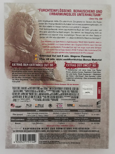 Verpassen Sie nicht die Gelegenheit, diese exklusive und ungekürzte Ausgabe von "Evil Dead" Ihr Eigen zu nennen. Ein absolutes Muss für Ihre Sammlung, perfekt für jeden Abend, an dem Sie sich wirklich gruseln möchten!