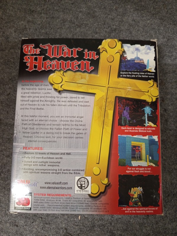 Stürzen Sie sich in das Abenteuer des einzigartigen Action-Spiels "War in Heaven", jetzt verfügbar als begehrte US-Rarität in der exklusiven Großbox-Version. Dieses Spiel, entwickelt von dem kreativen Team bei Valusoft, bietet nicht nur unterhaltsame, sondern auch inspirierende Spielmomente, die auf christlichen Geschichten basieren.