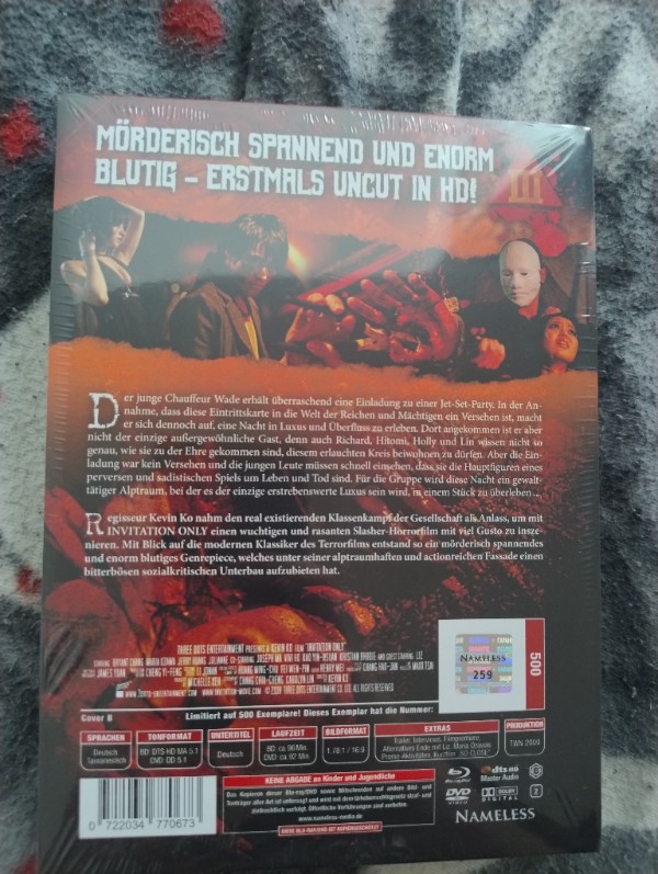 • Exklusive Extras: Neben dem Hauptfilm enthält diese Edition zusätzliche Inhalte, die tiefer in die Entstehung und das Universum von "Invitation Only" eintauchen lassen. Ideal für alle, die mehr über die Hintergründe und die Produktion erfahren möchten.