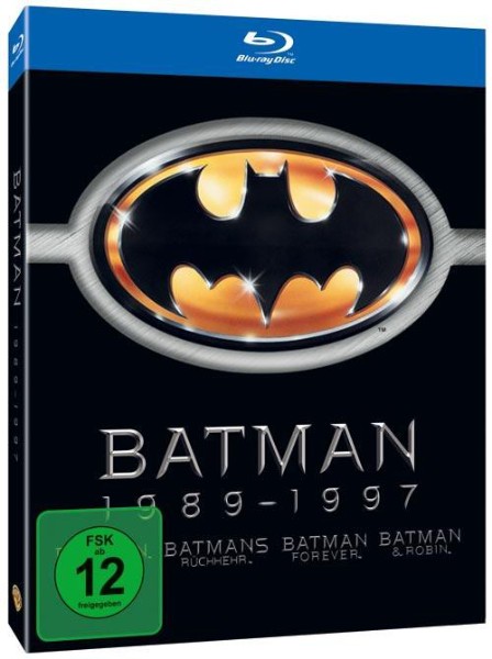 Diese exklusive Box enthält die Filme: "Batman" (1989) von Tim Burton mit Michael Keaton, "Batmans Rückkehr" (1992), ebenfalls unter der Regie von Burton und mit Keaton, "Batman Forever" (1995) unter der Regie von Joel Schumacher mit Val Kilmer und schließlich "Batman & Robin" (1997), auch von Schumacher, mit George Clooney in der Hauptrolle.