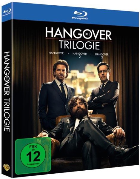 Die Box enthält "Hangover", in dem die Freunde nach einer wilden Nacht in Las Vegas aufwachen ohne Erinnerung an die vergangene Nacht und auf der Suche nach ihrem vermissten Freund sind. In "Hangover 2" verschlägt es die Gruppe nach Bangkok, wo erneut nach einer fehlgeschlagenen Vornacht das Chaos regiert. Der abschließende Teil, "Hangover 3", führt die Freunde zurück nach Las Vegas, wo alles begann, um dort ein letztes großes Abenteuer zu erleben.