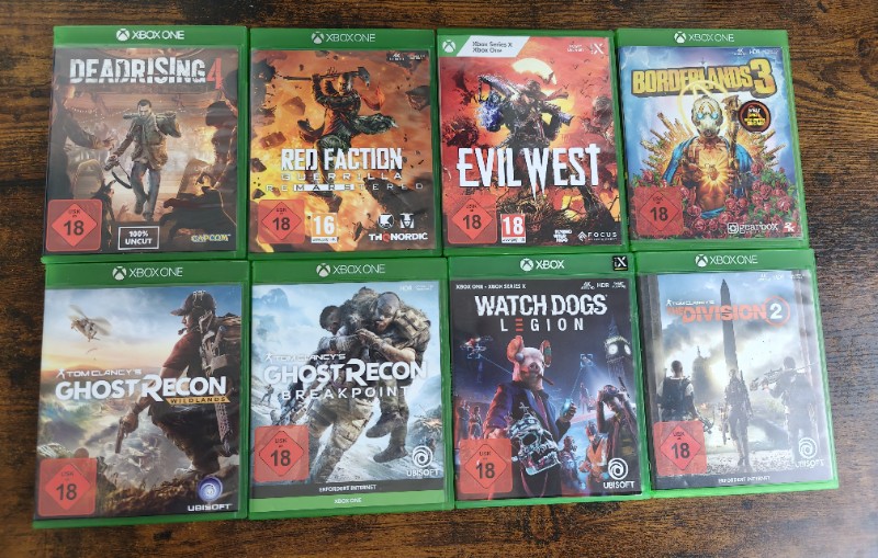 Biete 8 Action Spiele für die Xbox One/Series X zum verkauf an.