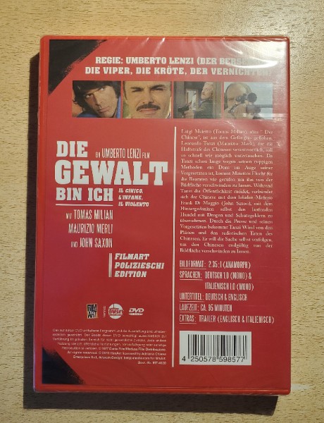 "DIE GEWALT BIN ICH" ist nicht nur ein Film, sondern ein Stück Filmgeschichte, das das italienische Kino der 70er Jahre definierte. Die Geschichte, die in den tiefen und dunklen Ecken der städtischen Kriminalität spielt, zeigt eine packende Jagd nach Gerechtigkeit. Die dynamische Erzählung und die hochspannenden Szenen machen diesen Film zu einem Muss für Liebhaber des Genres sowie für Sammler.