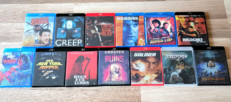 Verkaufe hier 13 Filme in einem sehr guten bis neuwertigen Zustand. Discs sind kratzfrei und wurden maximal nur einmal angeschaut. Alle Filme besitzen eine deutsche Sprachausgabe und sind ungeschnitten!
