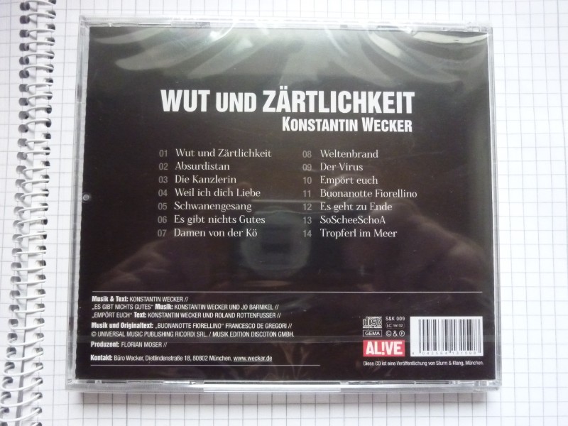 Lassen Sie sich von der tiefgründigen Mischung aus Leidenschaft und Nachdenklichkeit mitreißen, die Konstantin Weckers Album "Wut und Zärtlichkeit" bietet. Diese CD enthält eine Sammlung von Liedern, die sowohl die Seele berühren als auch zum Nachdenken anregen. Veröffentlicht in einer Zeit, in der emotionale Ehrlichkeit und musikalische Tiefe besonders geschätzt werden, bietet Weckers Werk eine perfekte Balance aus musikalischer Innovation und traditioneller deutscher Liedermacherkunst.