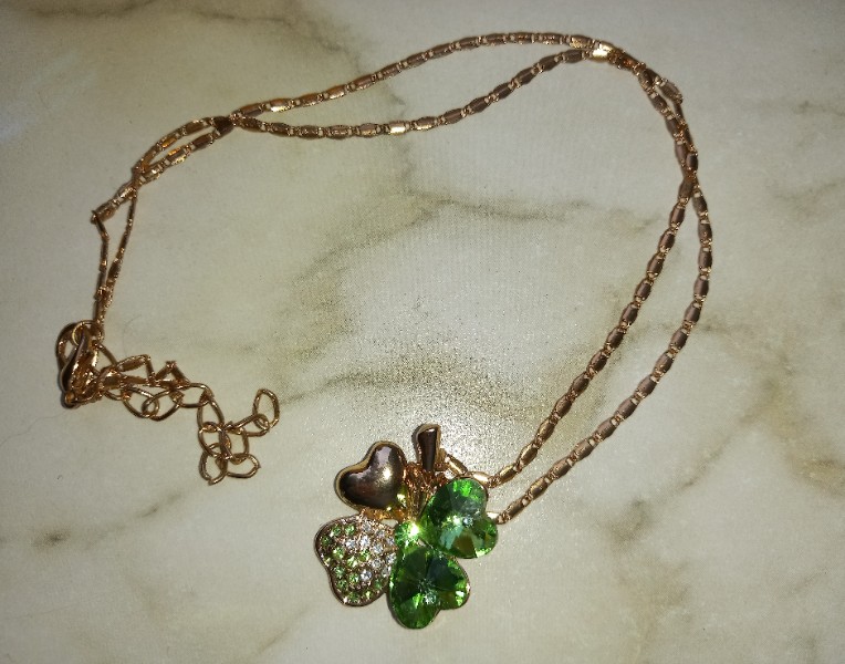 #Halskette #Kleeblatt #Goldfarben #Grün #Edelstahl #Schmuck #Modeschmuck #Kettenliebe #Geschenkidee #Handmade #Fashion #Statementkette #Schmuckstück #Kleeblattanhänger #Privatverkauf