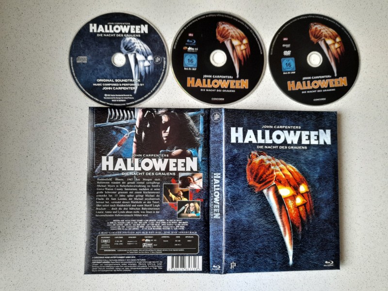 Das wattierte Cover verleiht dem Mediabook eine besondere Haptik und schützt den Inhalt sicher vor Abnutzungserscheinungen. Zudem macht es sich hervorragend in jeder Filmsammlung und sticht mit dem ikonischen „Halloween“-Artwork von riesigen Kürbissen und scharfen Messern sofort ins Auge.