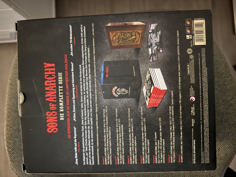 Mit der "Sons of Anarchy Komplette Serie limitierte Holzbox" erwerben Sie nicht nur eine Serie, sondern ein Stück Fernsehgeschichte, verpackt in einem Einzelstück, das in keiner Sammlung fehlen sollte.