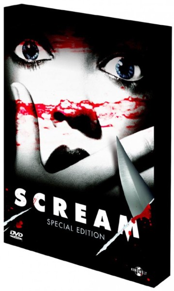 Die DVD kommt in einem robusten Pappschuber, der nicht nur Schutz bietet, sondern auch auf jedem Regal ästhetisch ansprechend aussieht. Die Gestaltung der Verpackung ist kunstvoll und fängt die Essenz des Films perfekt ein, mit schaurigen Bildern und dem ikonischen, weiß maskierten Gesicht, das von blutigen Spuren durchzogen ist.