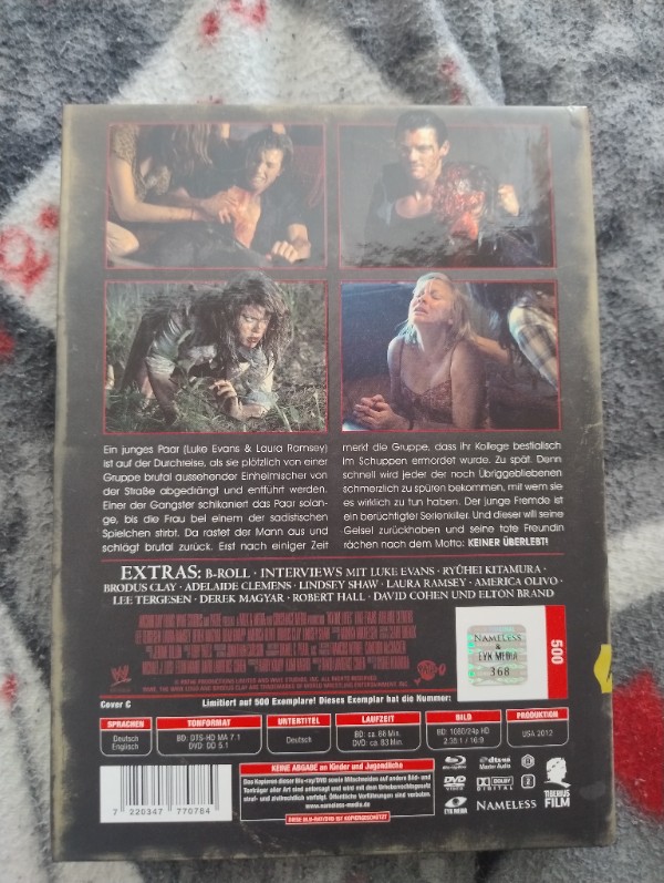 Sichern Sie sich jetzt dieses limitierte Mediabook und erleben Sie "No One Lives" in einer Qualität, wie sie nur eine Sammleredition bieten kann. Ideal für einen spannenden Horrorfilmabend oder als wertvolle Ergänzung Ihrer Sammlung. Kaufen Sie heute und lassen auch Sie niemanden entkommen, wenn Luke Evans in einer seiner beeindruckendsten Rollen brilliert.