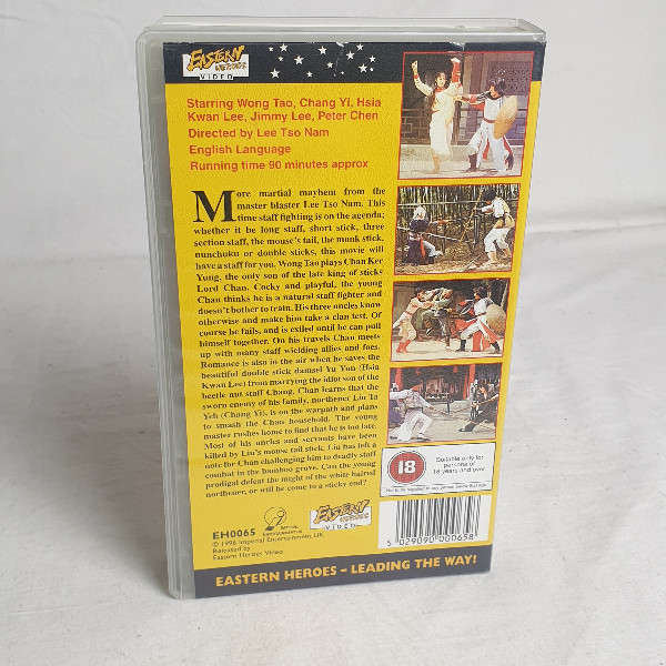 In "Shaolin Invincible Sticks" erwarten Sie atemberaubende Kampfkunst-Szenen, choreografierte Kämpfe und spektakuläre Stunts. Der Film entführt Sie in die faszinierende Welt der Shaolin-Mönche, die bekannt sind für ihre meisterhafte Beherrschung der Kampfkünste mit Stöcken. Diese VHS bringt Ihnen die Magie und die Energie dieses Klassikers direkt ins Wohnzimmer.