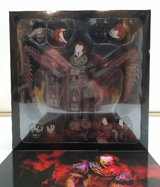 Die Figur zeigt Pennywise in seiner gruseligsten Form mit einem eindrucksvollen Ausdruck, der das unheimliche Lächeln und die bedrohlichen Augen hervorhebt. Sie ist aus hochwertigem, haltbarem Material gefertigt, was sie perfekt für Sammler macht, um sie in verschiedenen Posen darzustellen. Die Paketierung dieser Ultimate Edition unterstreicht die Sammelwürdigkeit des Objekts und zeigt den Clown vor einem ikonischen Hintergrund, der Fans sofort in die Atmosphäre von "IT" zieht.