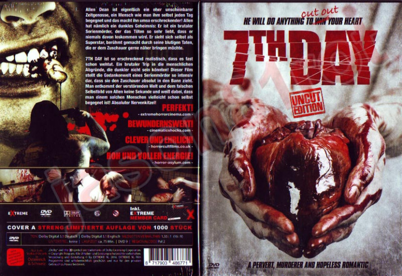 "7th Day" entführt Sie in eine beklemmende und düstere Atmosphäre, die durch gekonnte Regie und ein unverwechselbares visuelles Design besticht. Die ungeschnittene Version (Uncut Edition) garantiert, dass keine Szene der originalen Schockmomente verloren geht.