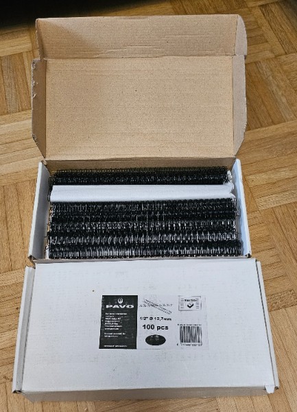 Im Karton mit Anleitung. Dabei sind 2× Packungen Drahtbinder. Wieviele genau kann ich nicht sagen, der eine Karton müsste aber vermutlich noch die kompletten 100 enthalten, der zweite Karton vielleicht noch die Hälfte.