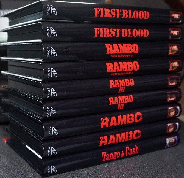 Die Boxen zu RAMBO 1 bis 3 sowie TANGO & CASH enthalten jeweils die ungeschnittenen Blu Rays in deutscher Sprache, die Boxen zu Rambo 4 sind jeweils mit einer deutschen Uncut-DVD bestückt.