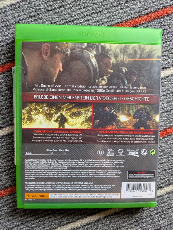 Sichern Sie sich jetzt die "Gears of War - Ultimate Edition - 100% Uncut" für Ihre Xbox One und bereiten Sie sich darauf vor, in eine Welt einzutauchen, in der jeder Moment zählt und jeder Schuss über Ihr Schicksal entscheiden kann. Ideal für Fans von actiongeladenen Spielen und solche, die tiefe, narrative Erlebnisse schätzen. Verpassen Sie nicht die Gelegenheit, diesen Klassiker in neuem Glanz zu erleben!