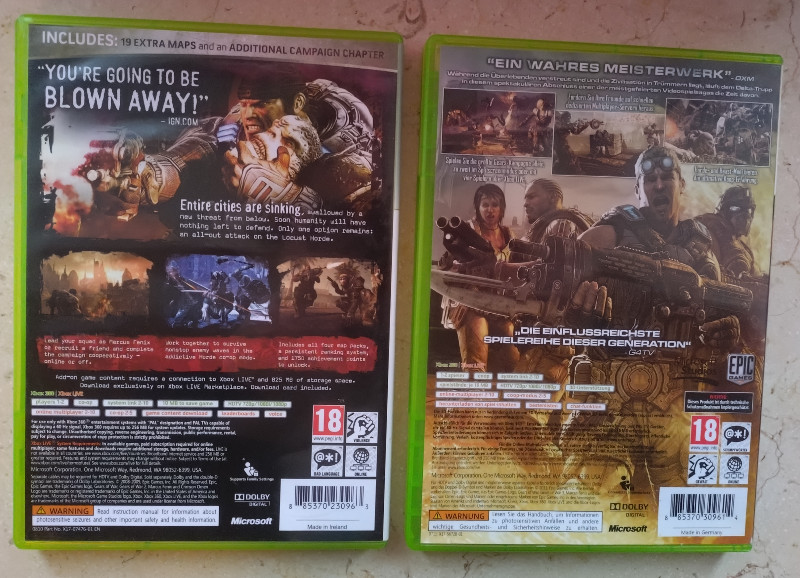 Verpasse nicht die Chance, zwei der herausragendsten Titel in der Geschichte der Videospiele zu erleben. Bestelle die "Gears of War 2 & 3 - 2 Spielesammlung X-Box 360" noch heute und sei bereit für ein Action-Erlebnis, das Du nicht vergessen wirst!