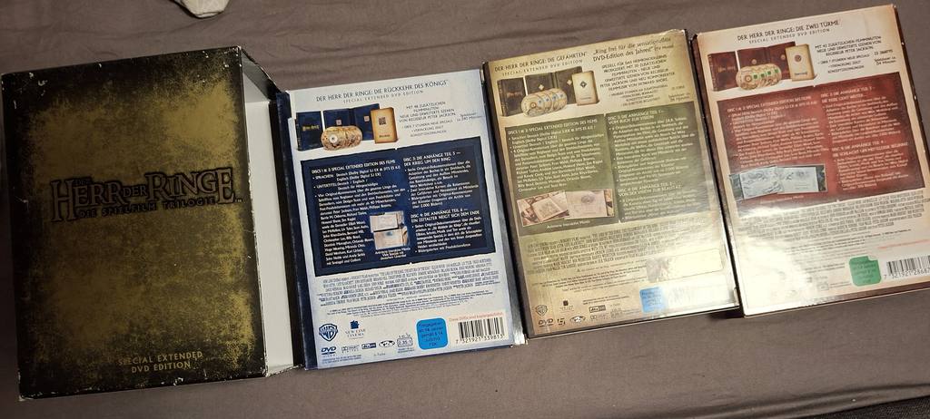 Jeder einzelne Teil der Trilogie – „Die Gefährten“, „Die zwei Türme“ und „Die Rückkehr des Königs“ – ist in dieser speziellen Edition mit zusätzlichem Filmmaterial ausgestattet, das nicht in den Kinoausgaben zu sehen war. Genieße über 30 Stunden an erweitertem Inhalt inklusive tieferer Einblicke in die Geschichte und die Charaktere, die J.R.R. Tolkien so liebevoll erschaffen hat.