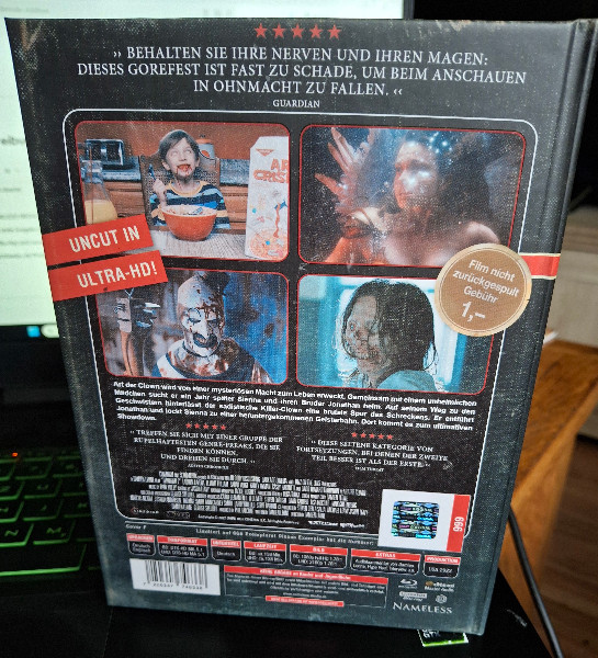 Kaufen Sie jetzt und sichern Sie sich Ihr Exemplar dieses limitierten Mediabooks, bevor es zu spät ist. Ein Muss für alle, die den wahren Geschmack von Horror und Exklusivität zu schätzen wissen! Rüste dich für einen unvergesslichen Filmabend mit Terrifier 2 Mediabook NAMELESS MEDIA Cover F.