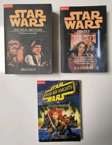 biete 3× Star Wars Romane "Star Wars - Han Solos Abenteuer", "Star Wars - Young Jedi Knights 4" und Star Wars - Episode 2 an.