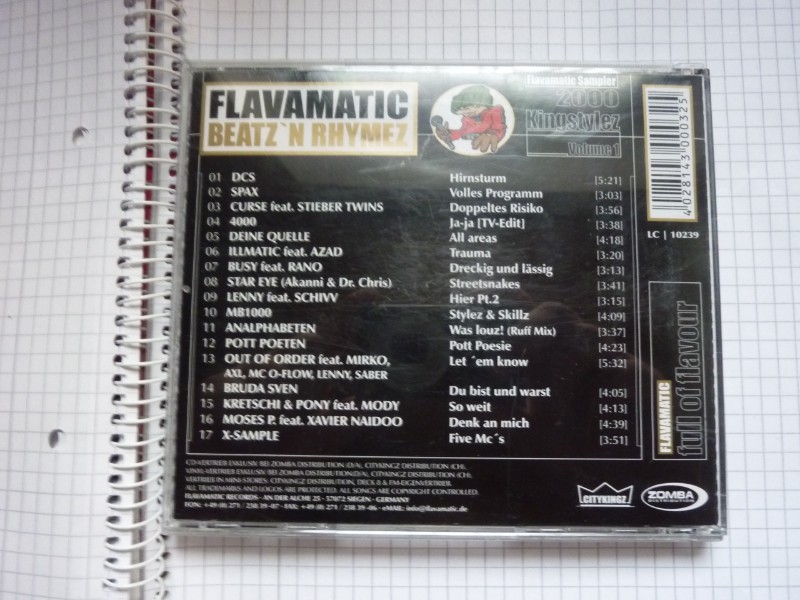 Die CD "Beatz N Rhymes" zeichnet sich nicht nur durch ihre hochqualitative Audioqualität aus, sondern wird auch in einer ansprechend gestalteten Hülle geliefert, die das kultige Flavamatic-Logo zeigt – ein echter Hingucker! Egal, ob du ein langjähriger Fan von Hip-Hop bist oder einfach nur auf der Suche nach frischen musikalischen Impulsen – diese CD wird deine Sammlung bereichern und deine Ohren verwöhnen.