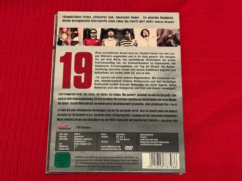 Genieße die Qualität einer gut produzierten DVD mit klarem Bild und hervorragendem Ton, die jedes Detail des Films würdigt. Die „19 - DVD Ein Film von Kazushi Watanabe“ ist verfügbar in limitierter Auflage, was sie zu einem wertvollen Sammlerstück macht.