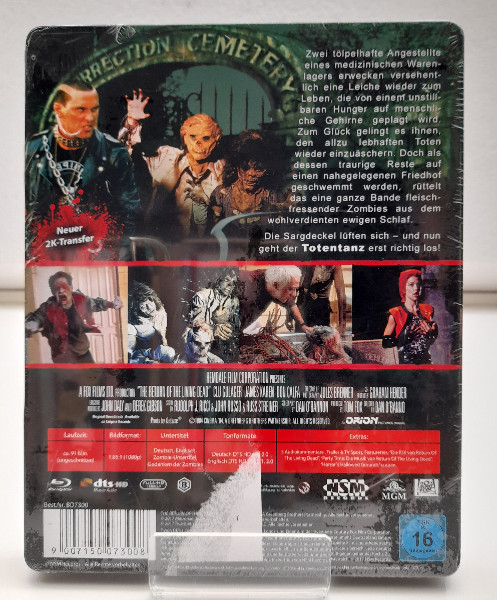 Erleben Sie den Kultklassiker "The Return of the Living Dead" in einer noch nie dagewesenen Weise mit dem exklusiven NSM Holo-Steelbook. Dieses Sammlerstück, verpackt in einem beeindruckend gestalteten Steelbook mit holografischen Effekten, bringt das ultimative Horror-Erlebnis direkt zu Ihnen nach Hause. "Verdammt, die Zombies kommen" – dieser ikonische Satz auf der Verpackung kündigt nicht nur Spannung und Nervenkitzel an, Filmliebhaber des Genres Splatter und Horror werden ihre Freude daran haben, dieses Meisterwerk in brillanter Blu-ray-Qualität zu genießen.
