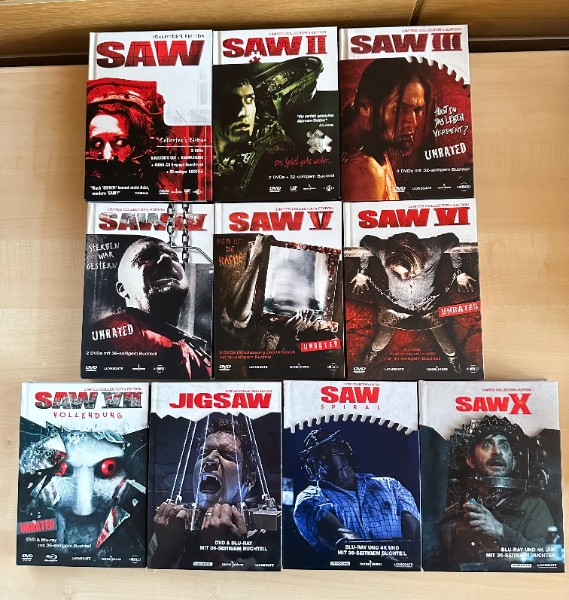 Verpasse nicht die Chance, Besitzer dieser exklusiven Sammlung zu werden. Die Saw 1-10 Mediabook Editionen sind die definitive Wahl für jeden, der die dunklen Rätsel und verzwickten Geschichten von Saw in höchster Qualität erleben möchte. Sicher dir deine Edition und sei bereit für Stunden hochspannender Unterhaltung!