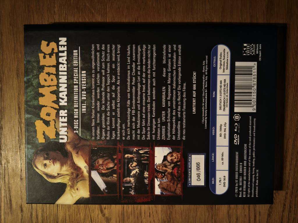 Neuwertiges 3-Disc Mediabook von XT-Video, limitierte Auflage von 666 Stück, hier die Nr. 046 aus Nichtraucher-Haushalt! Ungesehen, nicht abgespielt! Remasterte Version mit längeren Film-Szenen!