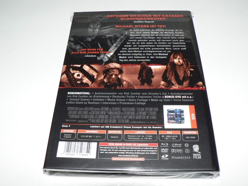 Hallo, verkaufe hier Rob Zombies Halloween II. Und zwar handelt es sich um das Mediabook von Nameless Media - Cover F, limitiert auf 400 Stück. Darin befindet sich der Film auf Blu-ray Disc und auch auf DVD. Sprachen Deutsch und Englisch - uncut. Neuwertiger Sammlerzustand.