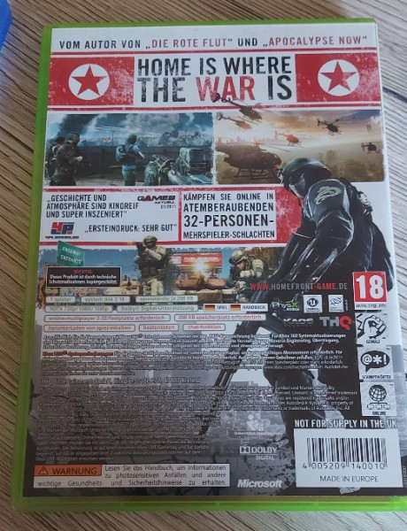 Wir schreiben das Jahr 2027. Die Welt leidet unter einer mehr als zehnjährigen Energiekrise und die Wirtschaftssysteme sind zusammengebrochen. Die einstige Supermacht USA, die nur noch ein Schatten ihrer selbst ist, wurde zum Ziel eines nordkoreanischen Angriffs. Amerikanische Einkaufszentren, Vororte und Straßen sind nun Kampfgebiet, auf dem der zivile Widerstand für Freiheit kämpft. Homefront bietet eine fesselnde Einzelspielergeschichte aus der Feder von John Milius (Apocalypse Now, Die rote Flut) und zieht die Spieler in einen interaktiven und kinoreifen First-Person-Shooter, in dem sie die Rolle eines Infanteristen oder die Kontrolle über eine Vielzahl von Luft- und Bodenfahrzeugen übernehmen. Neben der Einzelspielerkampagne liefert Homefront einen umfassenden Mehrspielerteil.