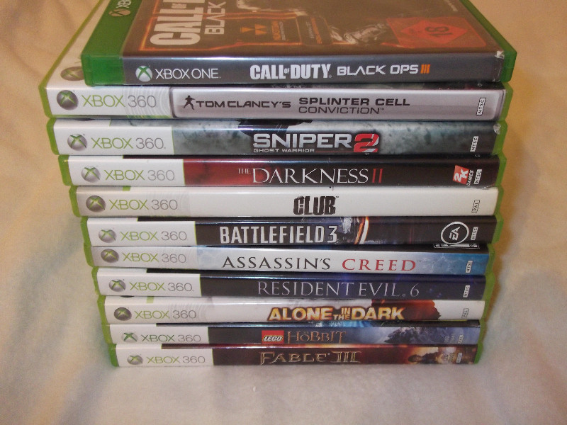 Zur Auktion steht ein Paket mit 10 Xbox 360 Spielen und einem Xbox One Spiel. Zustand der DVDs nach meiner Einschätzung im Schulnotensystem (1= sehr gut ; 6 = ungenügend) in Klammern. Umfang siehe Fotos, die meisten Hüllen in ordentlichem Zustand.