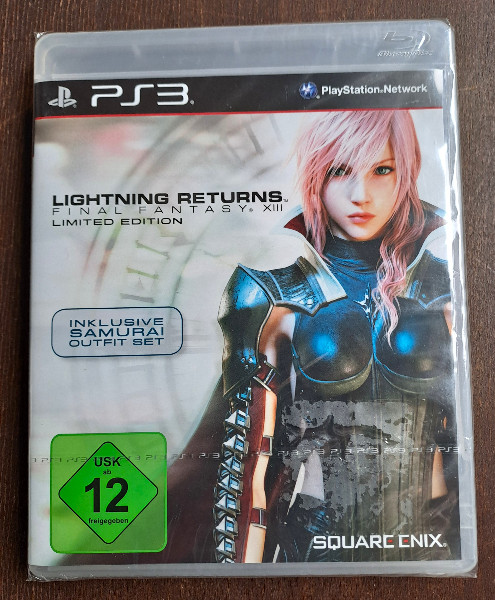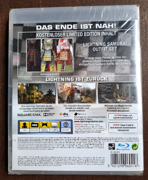 Lightning Returns inkl. Samurai Outfit Set - Sealed!!! Der "Fleck" vorne unten rechts ist nur ein Aufkleberrest auf der Verschweißfolie.
