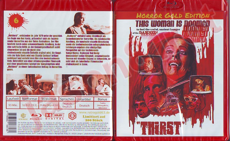 Tauche ein in die dunkle und fesselnde Welt von "Thirst", präsentiert in einer seltenen Horror Gold Edition Blu-ray, die nicht nur für Sammler, sondern auch für Liebhaber des Horror-Genres ein absoluter Muss ist. Erlebe ein blutiges Abenteuer in gestochen scharfem Bild dank der High-Definition Blu-ray-Qualität und entdecke ein Werk, das in seiner Originalversion uncut gelassen wurde, um dir das vollständige und unverfälschte Seherlebnis zu bieten.