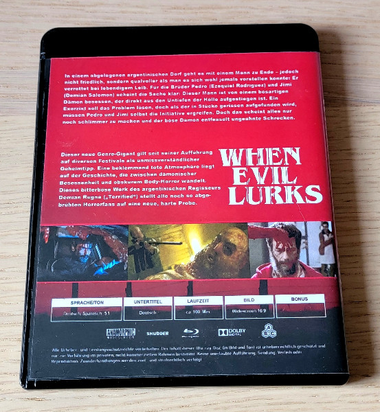 Die atemberaubende rote Hülle des Blu-ray-Covers zieht sofort die Aufmerksamkeit auf sich. Sie zeigt eine schaurige Szene, die perfekt die gruselige Atmosphäre des Films einfängt. Lassen Sie sich von der Aufmachung in die hoffnungslose Welt von "When Evil Lurks" entführen, wo das Böse an jeder Ecke lauert.