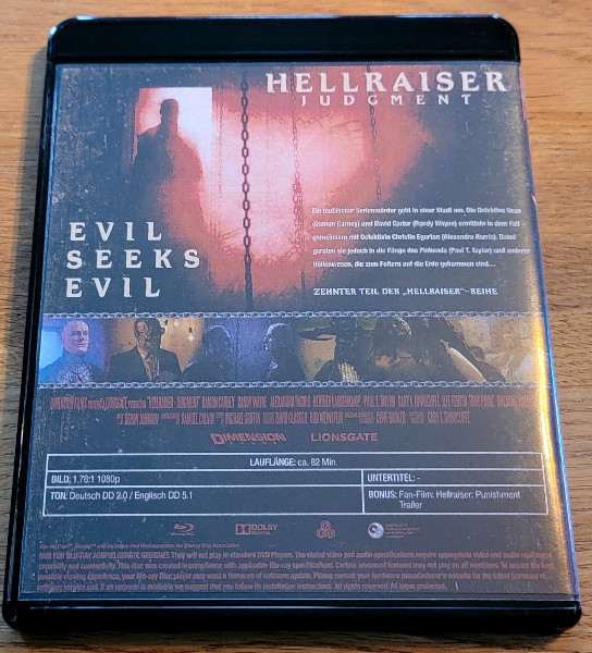 Verkaufe hier die Blu-Ray "Hellraiser Judgment". Der Film ist Uncut und besitzt eine deutsche Sprachausgabe! Film lag nie im Player und wurde nur aus seiner Folie entfernt, daher neuwertiger Zustand!