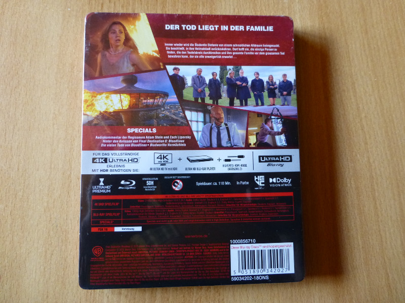 Tauche ein in die schaurig-faszinierende Welt von Final Destination 6 - Bloodlines. Dieses exklusive limitierte Steelbook bringt nicht nur das Blut in deinen Adern zum Gefrieren, sondern auch eine atemberaubende visuelle Qualität auf deinen Bildschirm. Erlebe den neuesten Eintrag in der kultigen Horrorfilmreihe in 4K Ultra HD + Blu-ray und sei so nah am Geschehen, wie nie zuvor dank des HDR (High Dynamic Range), der für gestochen scharfe Kontraste und unglaubliche Farbdetails sorgt.