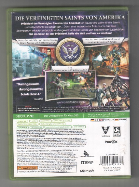 Darüber hinaus ist die „Saints Row 4 - Commander in Chief Edition“ für die Xbox 360 als 100% Uncut-Version erhältlich, was bedeutet, dass du die Version in vollem Umfang genießen kannst, wie sie von den Entwicklern vorgesehen war – ohne Zensuren oder Schnitte. Dies sorgt für ein intensives und ungefiltertes Spielerlebnis, das dich immer wieder überraschen wird.
