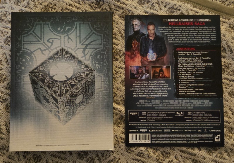 Die kunstvoll gestaltete Sammleredition bringt nicht nur das Hauptfeature, den Film "Hellraiser-Judgment", sondern ist auch ausgestattet mit einem spektakulär umfangreichen Bonusmaterial, das tiefe Einblicke in die Entstehung des Films und dessen düstere Ästhetik bietet. Interviews mit Cast und Crew, exklusive Behind-the-Scenes Aufnahmen und vieles mehr machen dieses Mediabook zu einer wahren Schatzkiste für jeden Horror-Liebhaber.