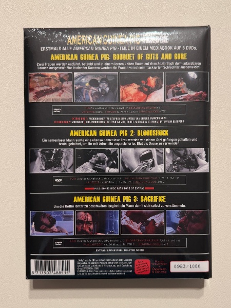 Limitierte Edition: Das "American Guinea Pig 1-3 (Limited Mediabook)" ist eine streng limitierte Auflage, die in keiner Sammlung fehlen darf. Ein Must-Have für Sammler und Fans des Extremhorror-Genres.