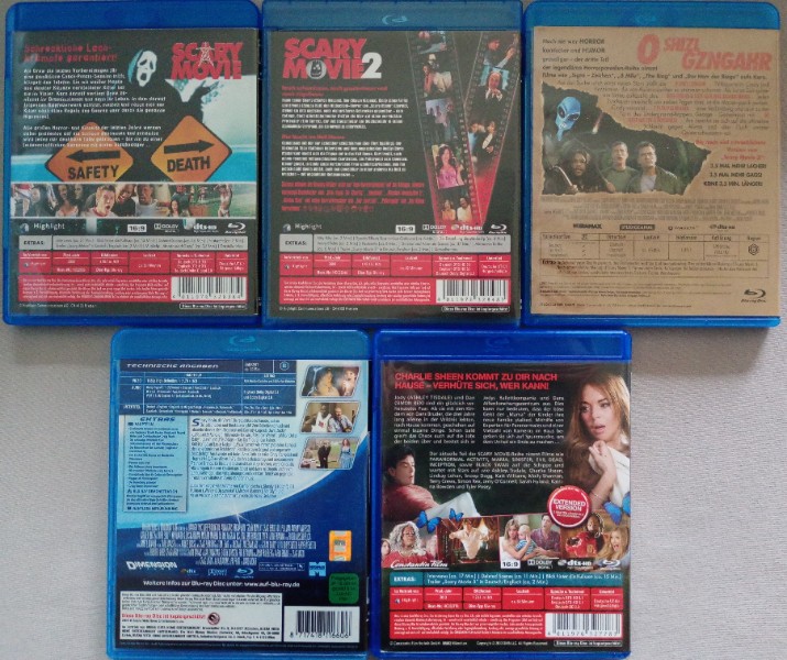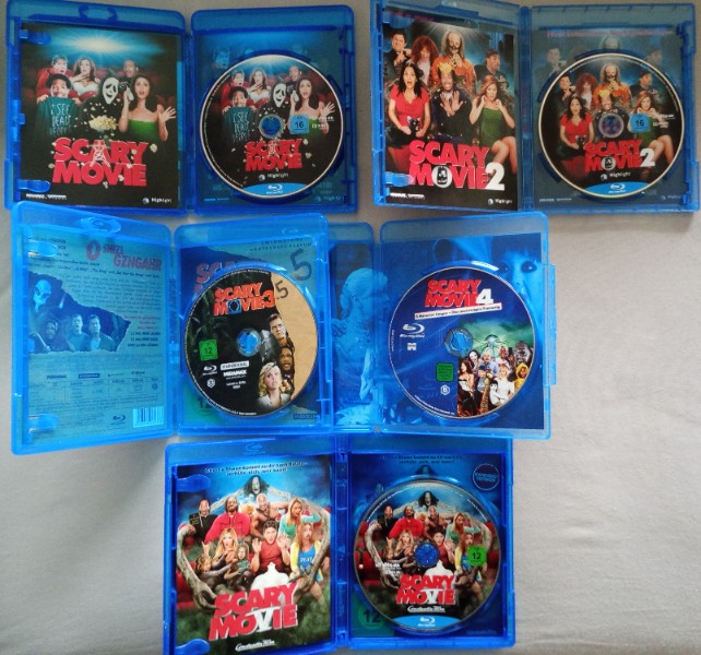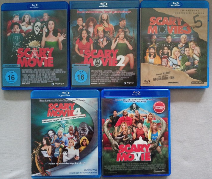 Ich verkaufe hier alle Teile der Serie Scary Movie auf Bluray.