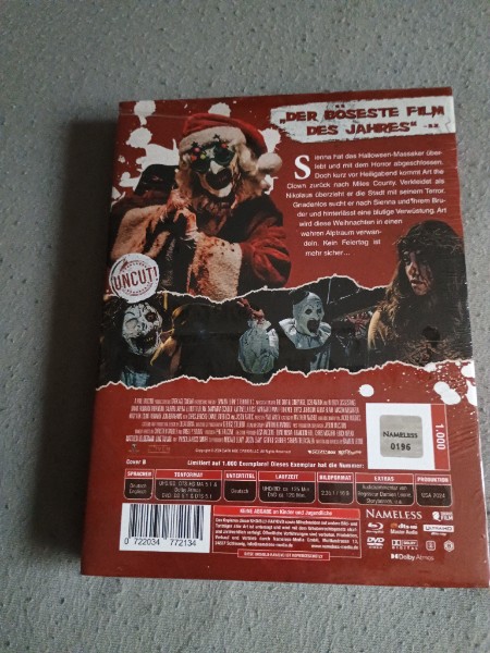 Lass dir diese limitierte Edition von "Terrifier 3" nicht entgehen. Garantiert ein Höhepunkt jeder Horror-Mediensammlung und ein Muss für alle, die hochwertige Horrorfilme und deren Präsentation schätzen.