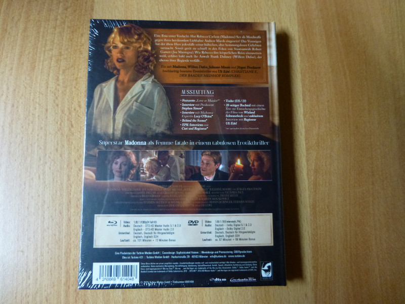 Dieses Limited Mediabook kommt nicht nur mit den Filmen auf Blu-ray und DVD, sondern enthält auch ein Begleitbuch, welches tiefe Einblicke in die Entstehung des Films und exklusive Hintergrundinformationen bietet. Das Cover zeigt beide Hauptdarsteller in einer suggestiven Pose, was das mysteriöse und sinnliche Ambiente des Films perfekt einfängt.