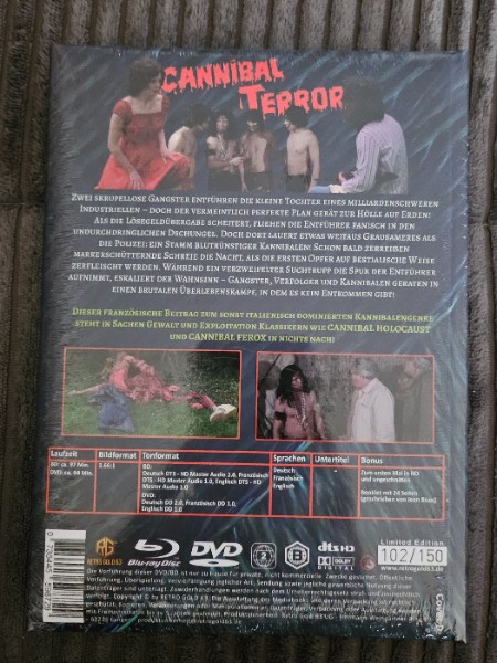biete den Film "Cannibal Terror" im wattierten und limitierten Blu Ray und DVD Mediabook an.