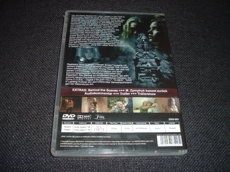 "The Chair" kommt als Widescreen-Version, die das düstere und bedrückende Ambiente des Films optimal einfängt. Der Film spielt geschickt mit tiefenpsychologischen Elementen und klassischen Schockmomenten, die dich an den Rand deines Sitzes treiben werden. Mit einer Altersfreigabe von FSK 18 ist dieser Film klar nichts für schwache Nerven.