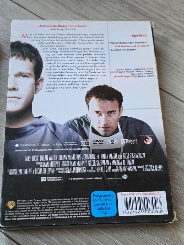 Die DVD-Box beinhaltet alle Episoden der zweiten Staffel, perfekt aufbereitet mit klarer Bild- und Tonqualität. Jede DVD bietet nicht nur die kompletten Folgen, sondern auch Bonusmaterial, das dir einen tieferen Einblick in die Entstehung dieser einzigartigen Serie bietet. Von Hinter-den-Kulissen-Dokumentationen bis hin zu Interviews mit den Schauspielern und der Crew, erfährst du alles, was hinter den Kulissen von Nip Tuck passiert.