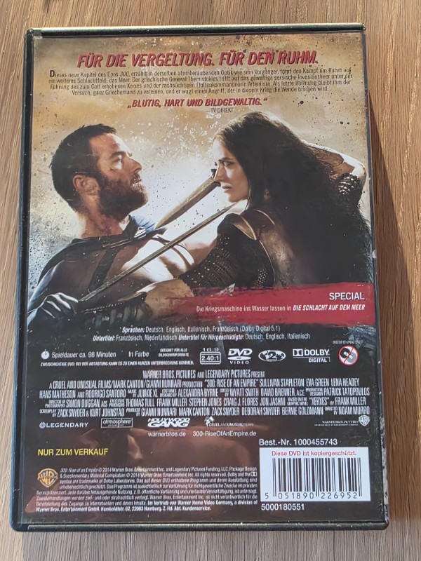 Verpasse nicht die Gelegenheit, „300: Rise of an Empire“ zu deiner DVD-Sammlung hinzuzufügen. Bestelle jetzt und bereite dich darauf vor, Teil einer Welt zu werden, in der Ehre, Mut und das Schicksal ganzer Reiche auf dem Spiel stehen!