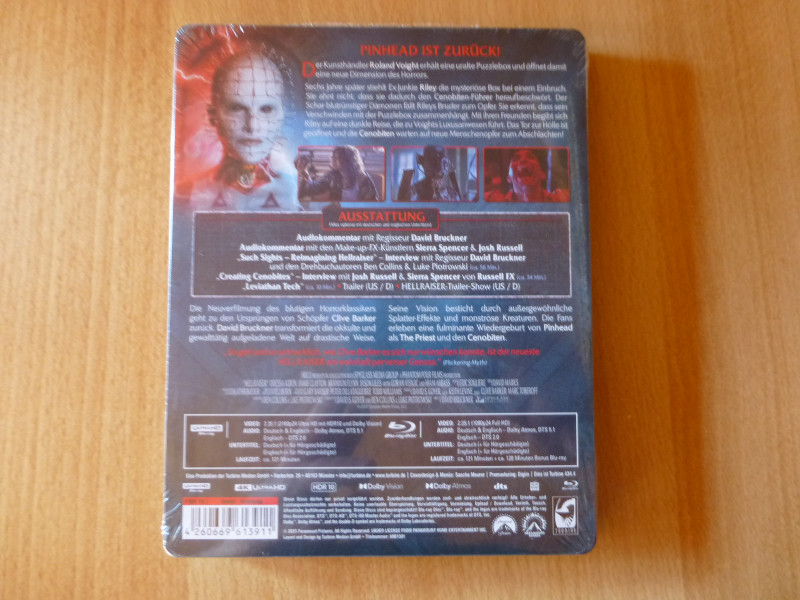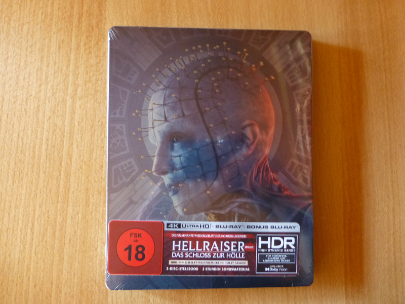 Das limitierte Steelbook dieser Ausgabe enthält drei Discs – die 4K-Ultra-HD-Version des Films, eine zusätzliche Blu-ray mit dem Film und eine Bonus-Blu-ray, die mit umfangreichem zusätzlichem Material wie einem zweistündigen Dokumentarfilm und verlorenen Szenen ausgestattet ist. Die besondere Auflösung sorgt für gestochen scharfe Bilder, während der Dolby Atmos® Sound dich tief in die schaurige Atmosphäre des Films eintauchen lässt. Durch den Einsatz von modernsten Technologien wird so jeder Schauer effektvoll verstärkt und die erschreckende Geschichte um das rätselhafte Lament-Konfigurationspuzzle und die damit einhergehenden Cenobiten wird intensiver erlebt denn je.